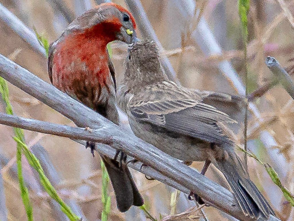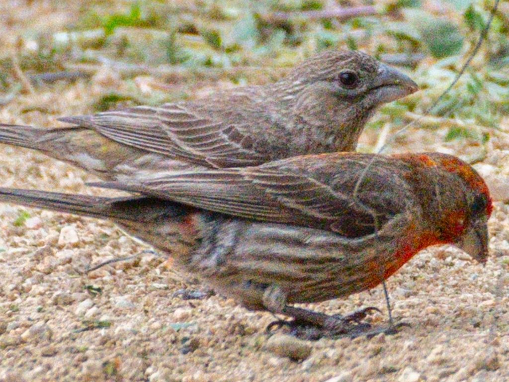 Females feast on the same seeds but do not convert these pigments into colored feathers. They do however select their mate based on the vibrancy of the male’s feather color. Female House Finches tend to choose males with bigger and brighter red patches—it’s a sign of a well-fed, healthy mate who will likely be able to gather and provide an ample nutritious diet for the chicks they raise together and help to ensure their survival into a healthy adulthood.